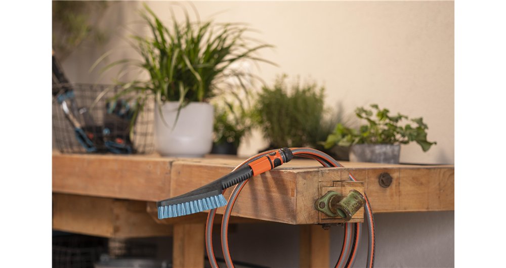 Conductor de agua: conéctelo a la manguera de jardín con un «click» para lavar zonas pequeñas como cubos de basura Eficiente: cepillo con cerdas duras, ideal para la limpieza a fondo de superficies robustas Flexible: el flujo de agua puede regularse en función de las necesidades gracias al regulador continuo del flujo de agua GARDENA extiende una garantía de 5 años al registrar este artículo. Más información en la descripción del producto Contenido del producto: 1 Cepillo de mano S duro GARDENA Cleansystem El cepillo de mano S de cerdas duras GARDENA Cleansystem limpia con eficacia y en profundidad las zonas pequeñas y robustas del exterior. Una limpieza con agua exhaustiva y eficaz de superficies exteriores pequeñas y robustas Es tan fácil como conectar el cepillo de lavado a la manguera con un «click» y listo. Con el cepillo de mano conductor de agua, las superficies pequeñas y robustas, como los cubos de basura, se lavan fácilmente y con especial eficacia, sin tener que inclinarse constantemente hacia ningún cubo. El mango antideslizante permite un manejo seguro y estable, ideal para acabar con la suciedad resistente y profunda. Cerdas duras para la limpieza intensiva de superficies robustas Las cerdas duras del cepillo se han desarrollado especialmente para todas las zonas exteriores robustas. Una limpieza en profundidad de superficies pequeñas y robustas en balcones, terrazas o jardines. Con el cepillo duro conductor de agua, la suciedad resistente y adherida se retira en un instante. El cepillo de mano potente para una limpieza flexible con flujo de agua regulable y con cierre Con un simple giro del mango del cepillo, se puede ajustar el caudal de agua según las necesidades o bien detener el agua por completo. El cepillo de mano con cerdas robustas y regulación continua del chorro proporciona así el control total de la cantidad de agua durante la limpieza y permite gestionar de forma eficaz y precisa las superficies sólidas. Una herramienta indispensable para todos los que están cansados de hacer viajes constantemente al grifo durante las tareas de limpieza. Limpieza eficaz con barritas de champú Las barritas de champú GARDENA (art. 18852) garantizan una limpieza aún más exhaustiva. Simplemente coloque las barritas de champú en el cepillo, encájelo en la manguera y el champú se mezclará automáticamente a la perfección con el agua. Esto evita tener que mezclar trabajosamente el agua de limpieza con productos especiales y la mezcla jabonosa se distribuye directamente en la superficie con el cepillo. La combinación idónea para sacar brillo a las vallas y superficies similares. Duradero, resistente a los rayos UV y a las heladas con la garantía GARDENA El cepillo es resistente a los rayos UV y las heladas, por lo que puede utilizarse y almacenarse en el exterior durante todo el año. El producto fabricado en Alemania convence por el material duradero y la gran calidad. GARDENA otorga una garantía de 5 años. tras el registro en gardena.com/es/c/asistencia/registro-garantia en un plazo de 3 meses desde la compra. Condiciones de garantía en gardena.com/es/c/asistencia/registro-garantia.