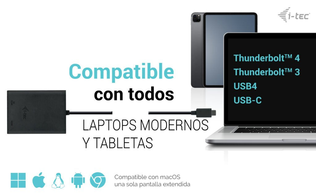 Amplíe su escritorio a dos monitores HDMI externos o conecte proyectores o televisión a su portátil, tableta o PC mediante el nuevo conector USB-C o Thunderbolt 3. El adaptador admite 1x 8K / 30 Hz o 2x 4K / 60 Hz.